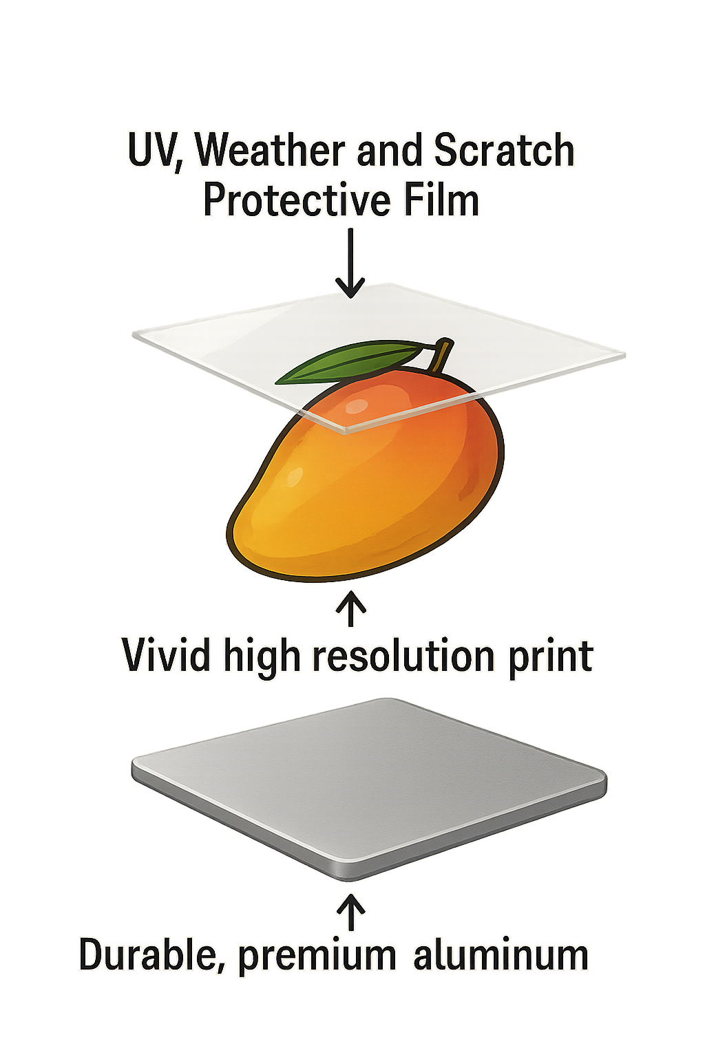 - Vivid Mango Artwork: Eye-catching, full-color mango designs printed with UV-resistant inks and a protective laminate to maintain vibrant colors in any weather.